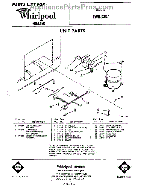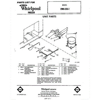 Parts for Whirlpool EWH23S1: 01 - Section Parts