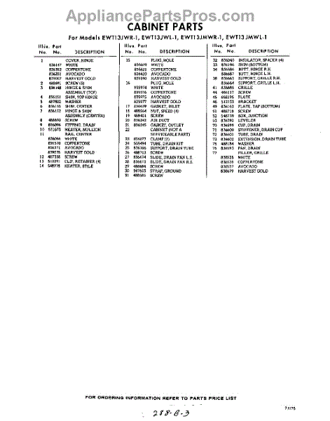 Parts for EWT13JMWR1