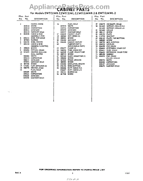 Parts for EWT13JMWR2