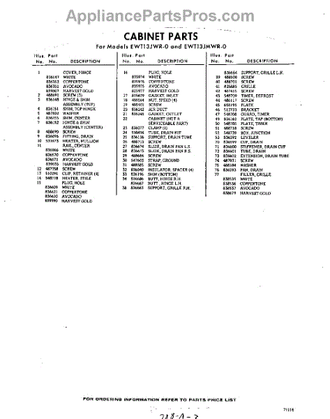 Parts for EWT13JWR0
