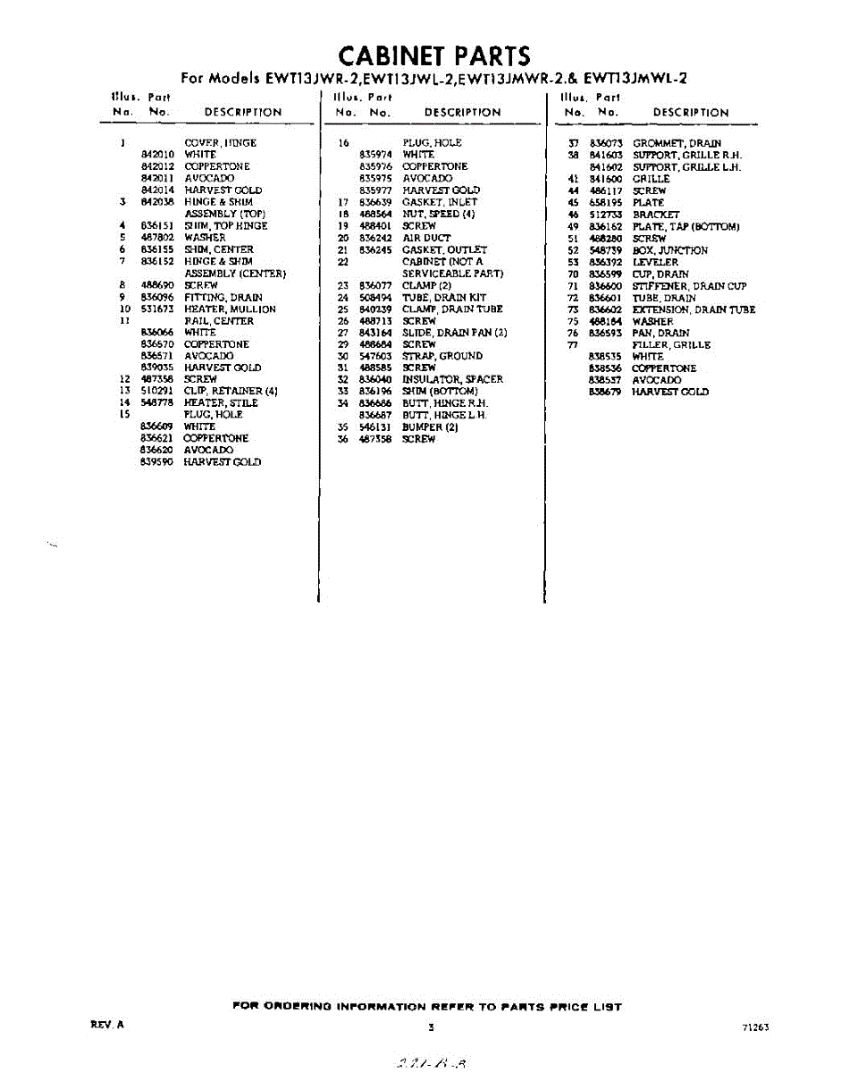 Parts for EWT13JWR2