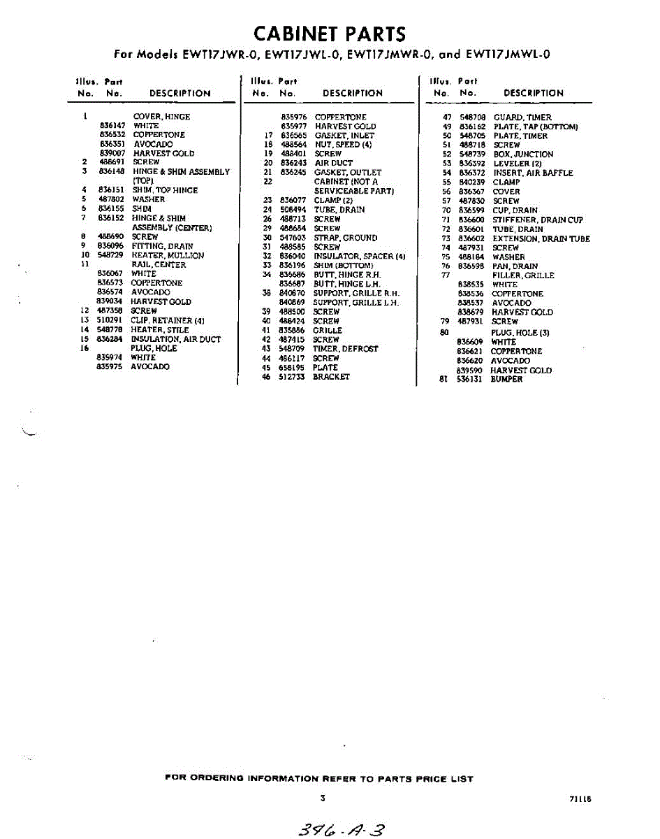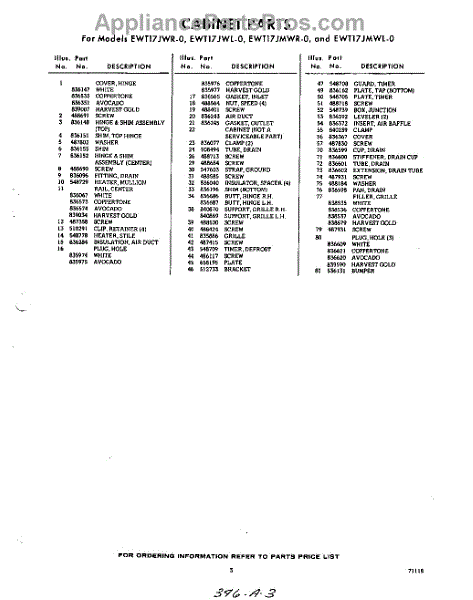 Parts for EWT17JWR0