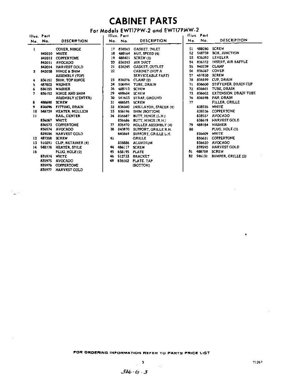 Parts for EWT17PMW2