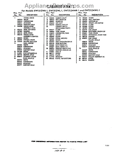 Parts for EWT51ZMWR1