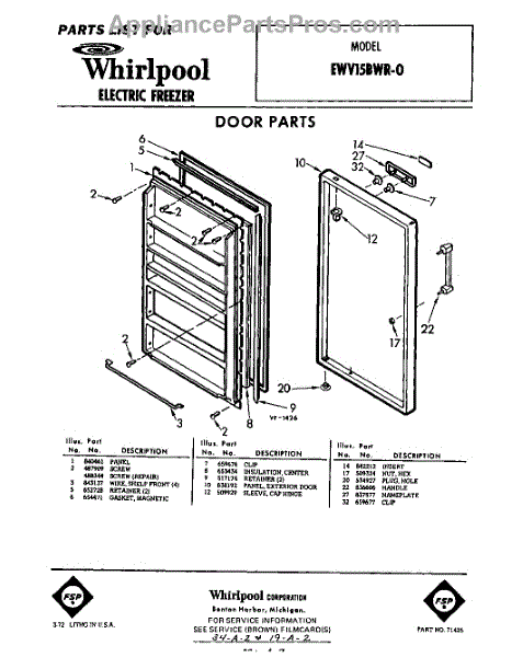 Parts for Whirlpool EWV15BWR0: 01 - Section Parts