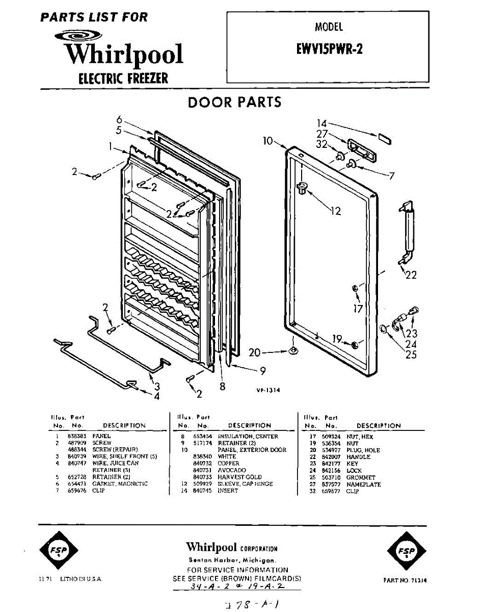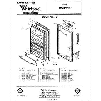 Parts for Whirlpool EWV15PWR2: 01 - Section Parts