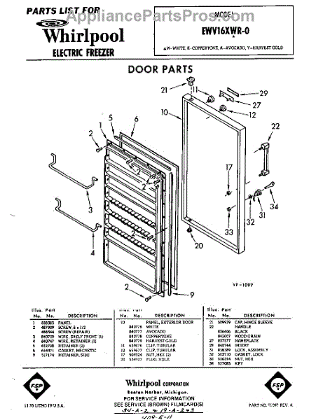 Parts for Whirlpool EWV16XWR0: 01 - Section Parts