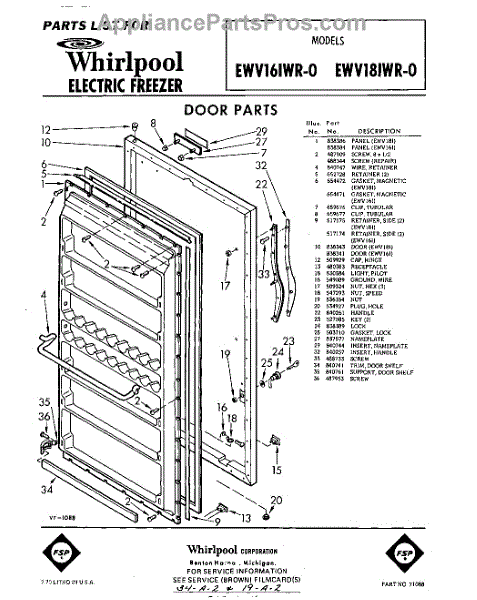 Parts for EWV18IWR0