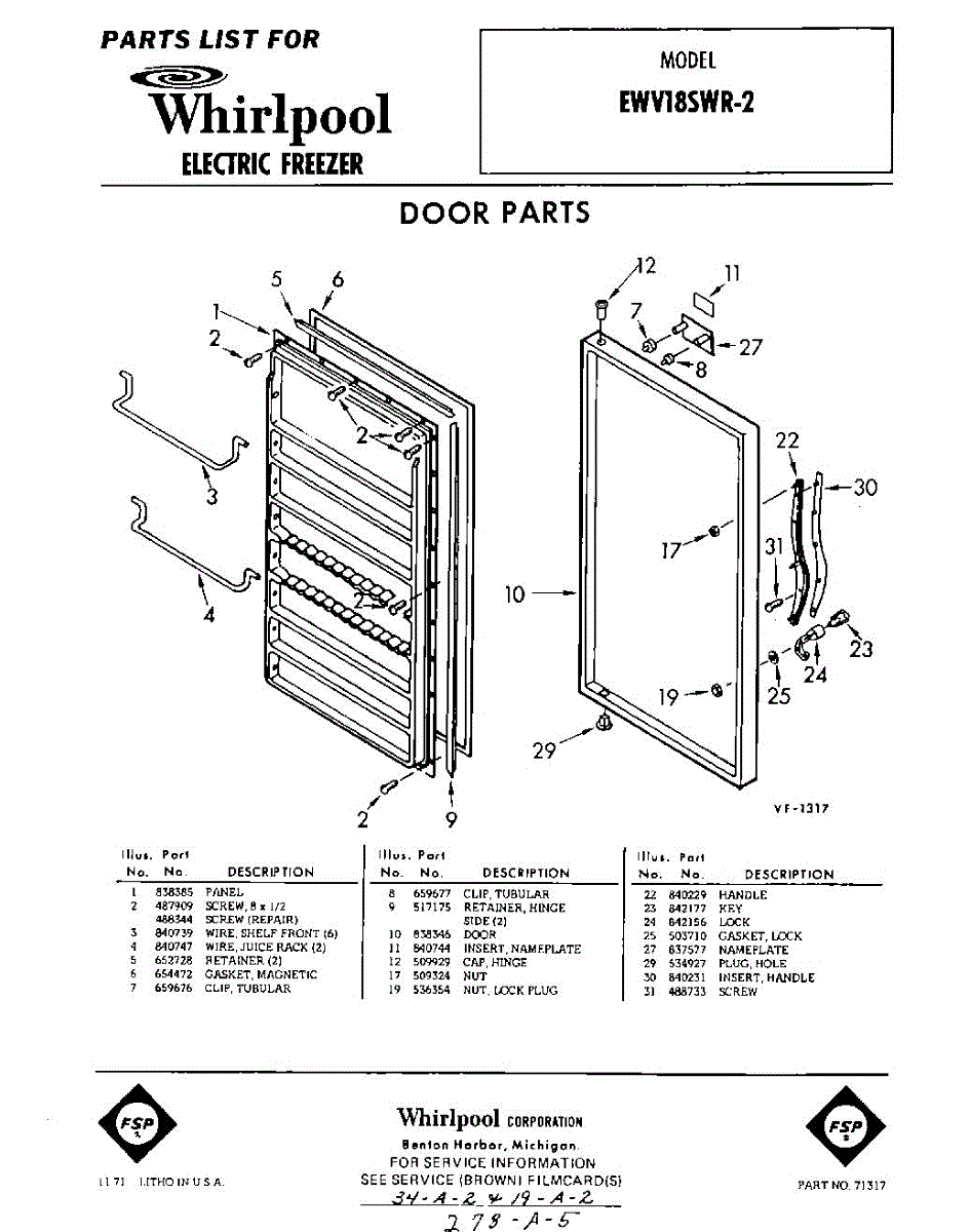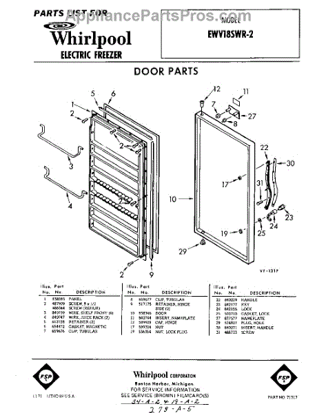 Parts for Whirlpool EWV18SWR2: 01 - Section Parts