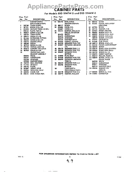 Parts for Whirlpool EXD19NMWR0: 03 - Section Parts