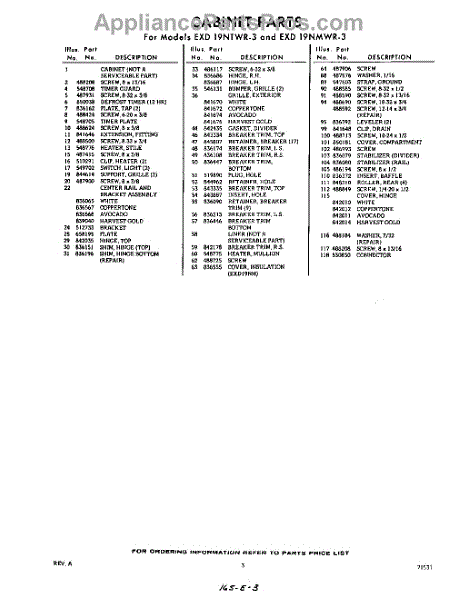 Parts for Whirlpool EXD19NMWR3: 03 - Section Parts