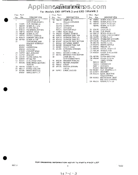 Parts for EXD19PMWR3