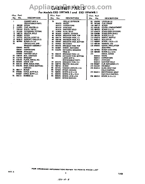 Parts for Whirlpool EXD19PTWR1: 03 - Section Parts