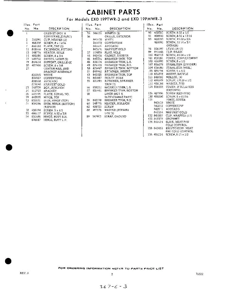 Parts for EXD19PTWR3