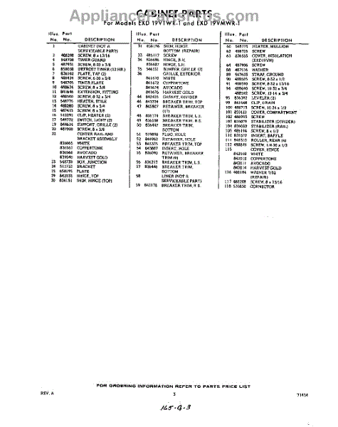Parts for Whirlpool EXD19VMWR1: 03 - Section Parts