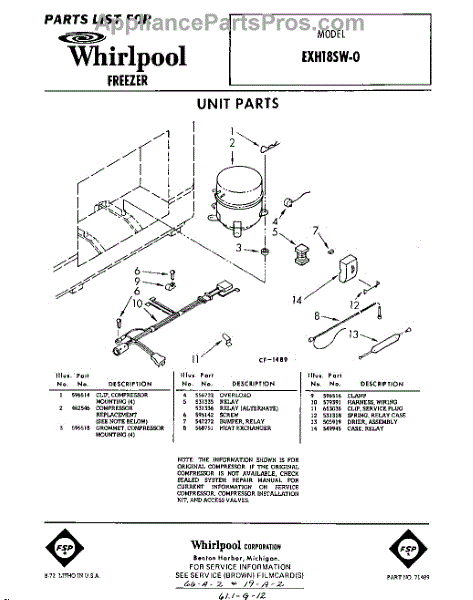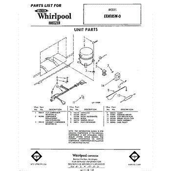 Parts for Whirlpool EXH18SW0: 01 - Section Parts