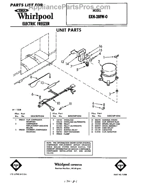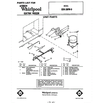 Parts for Whirlpool EXH28FW0: 01 - Section Parts