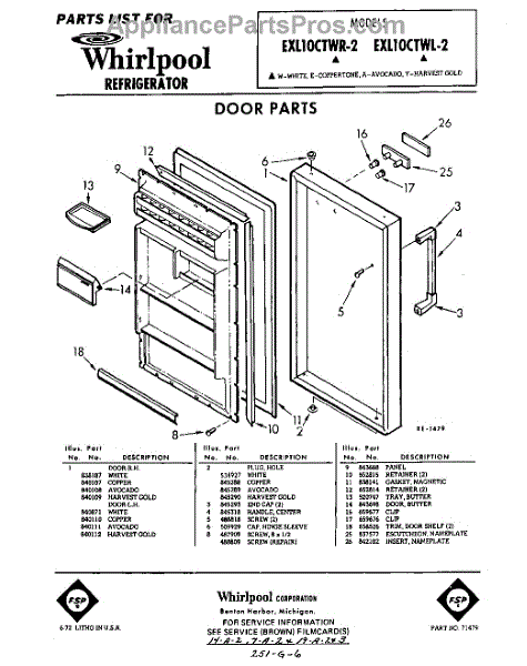 Parts for Whirlpool EXL10CTWR2: 01 - Section Parts