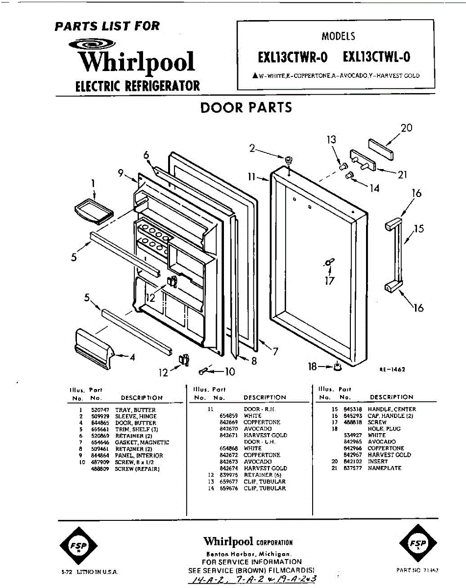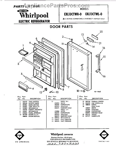 Parts for Whirlpool EXL13CTWR0: 01 - Section Parts