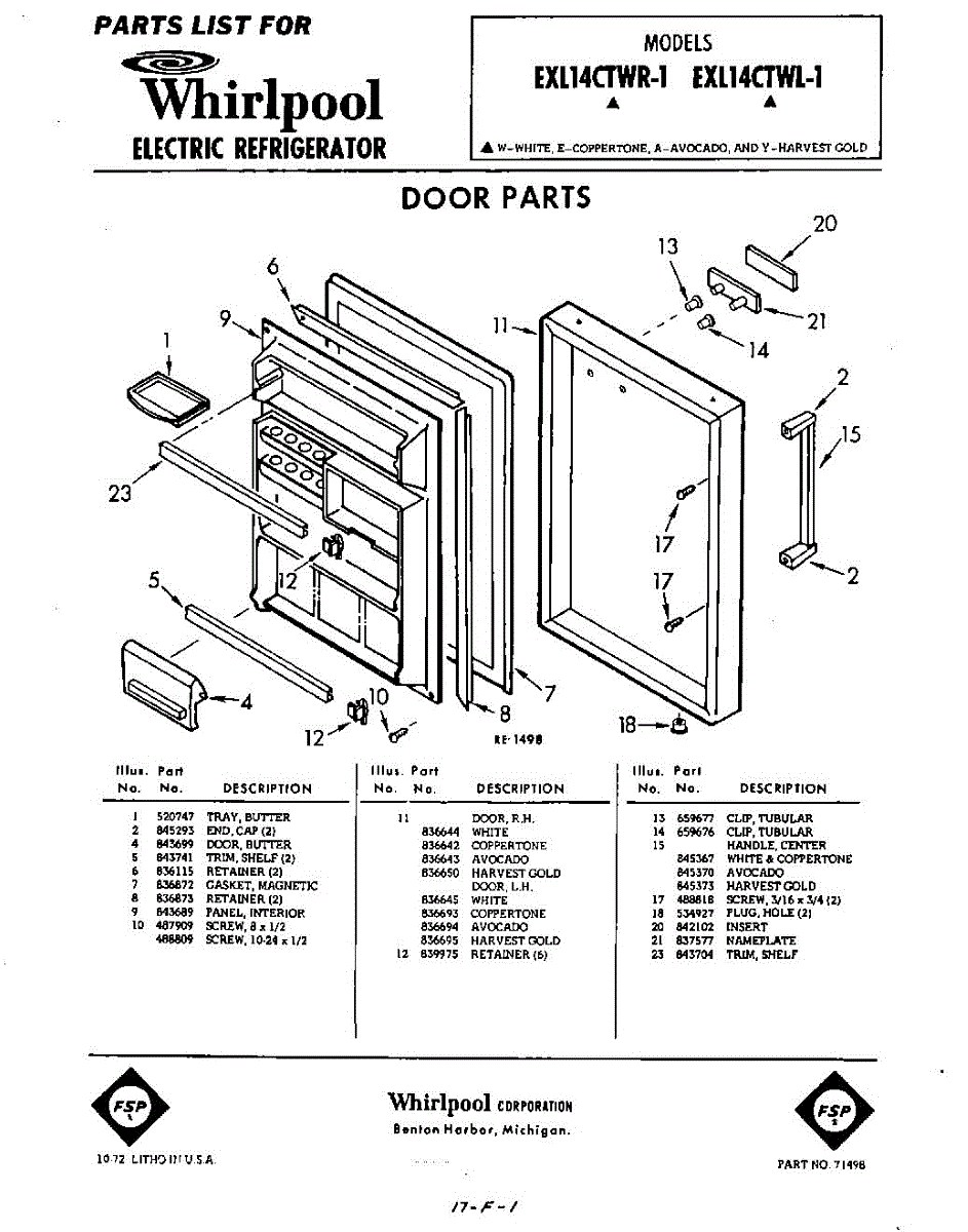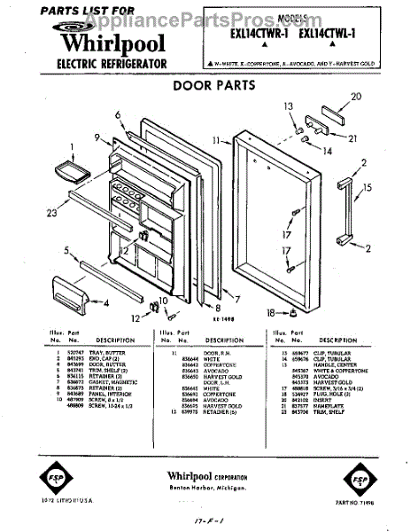 Parts for Whirlpool EXL14CTWR1: 01 - Section Parts