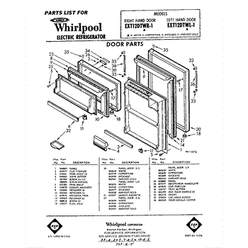 Parts for Whirlpool EXT12DTWR1: 01 - Section Parts
