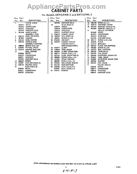 Parts for Whirlpool EXT13JTWR3: 03 - Section Parts
