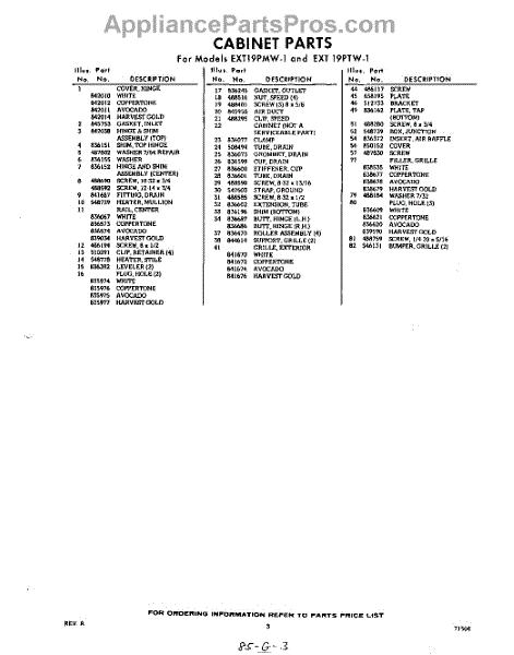 Parts for Whirlpool EXT19PTW1: 03 - Section Parts