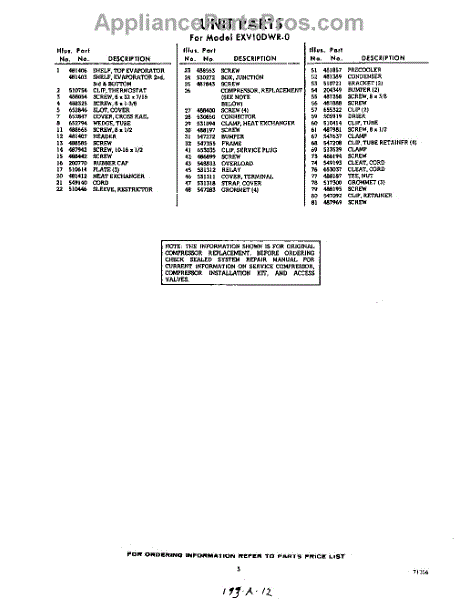 Parts for EXV10DWR0