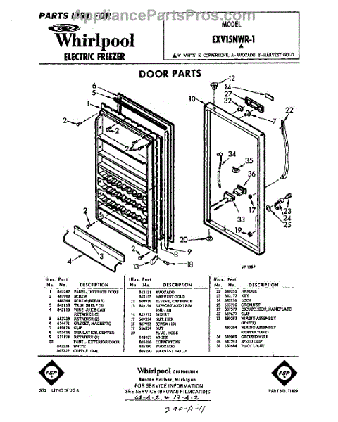 Parts for Whirlpool EXV15NWR1: 01 - Section Parts
