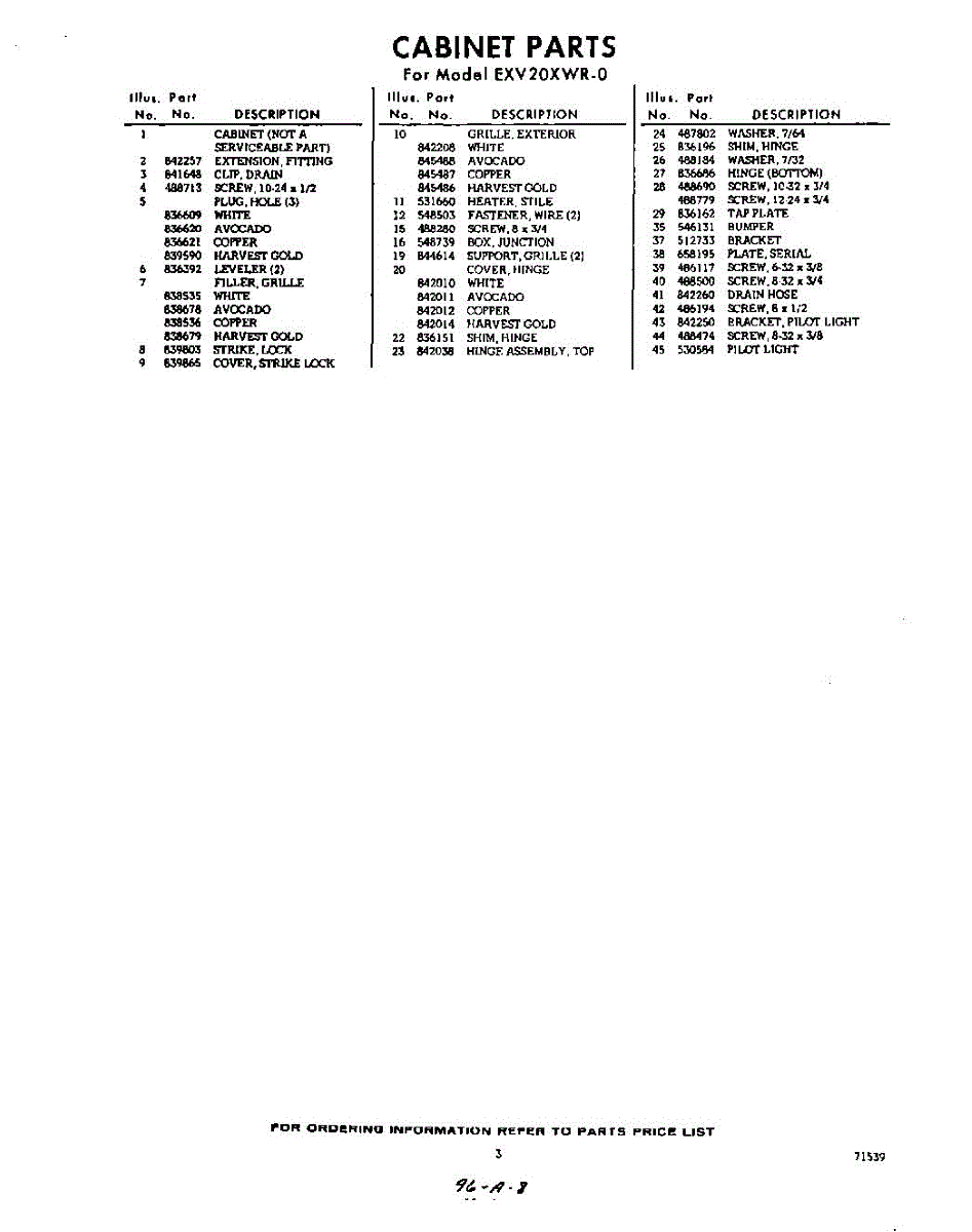 Parts for Whirlpool EXV20XWR0: 03 - Section Parts