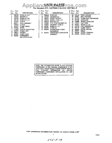 Parts for EYL12CTWR2