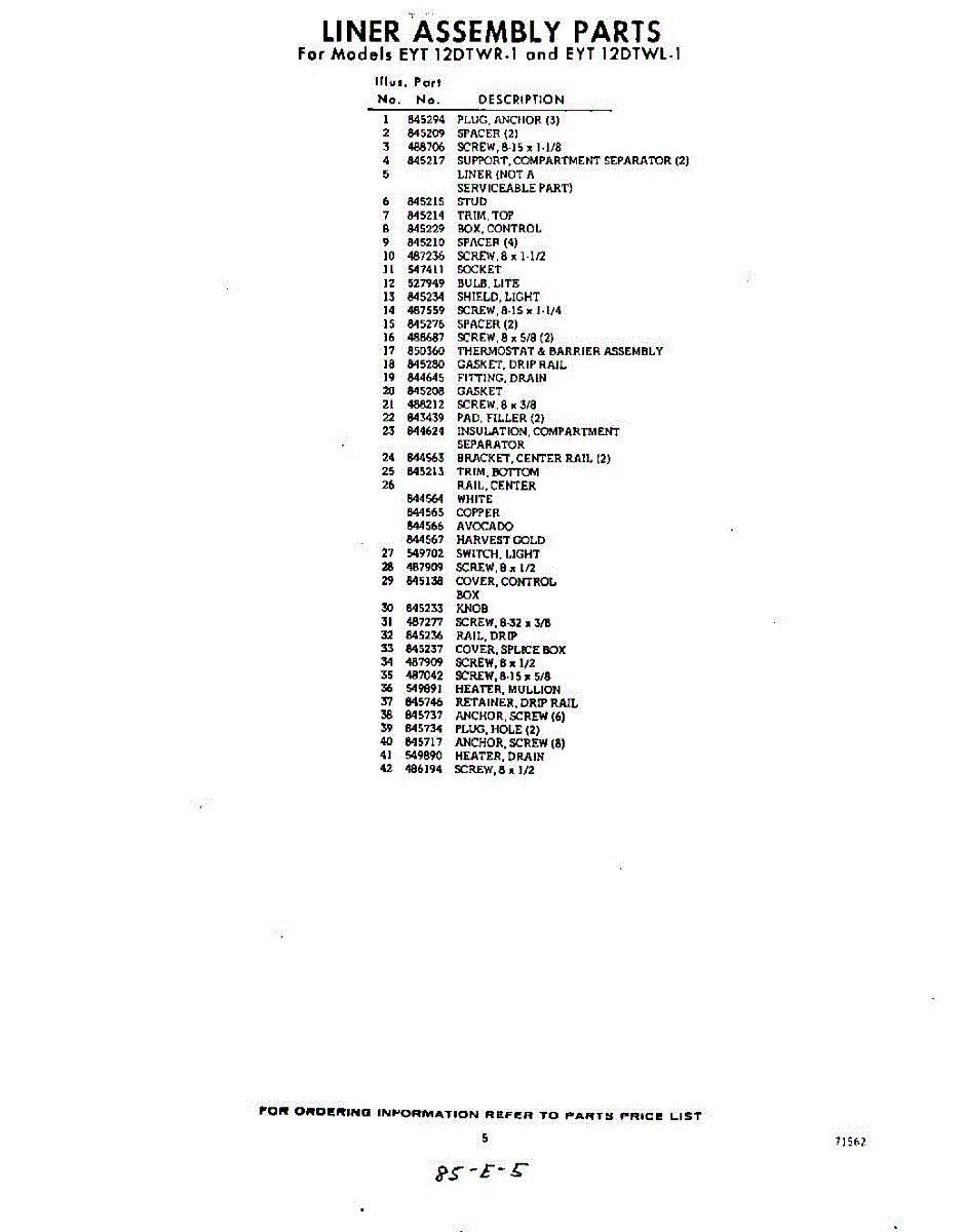 Parts for Whirlpool EYT12DTWR1: 05 - Section Parts