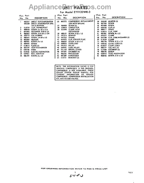 Parts for EYV12DWR0