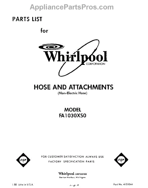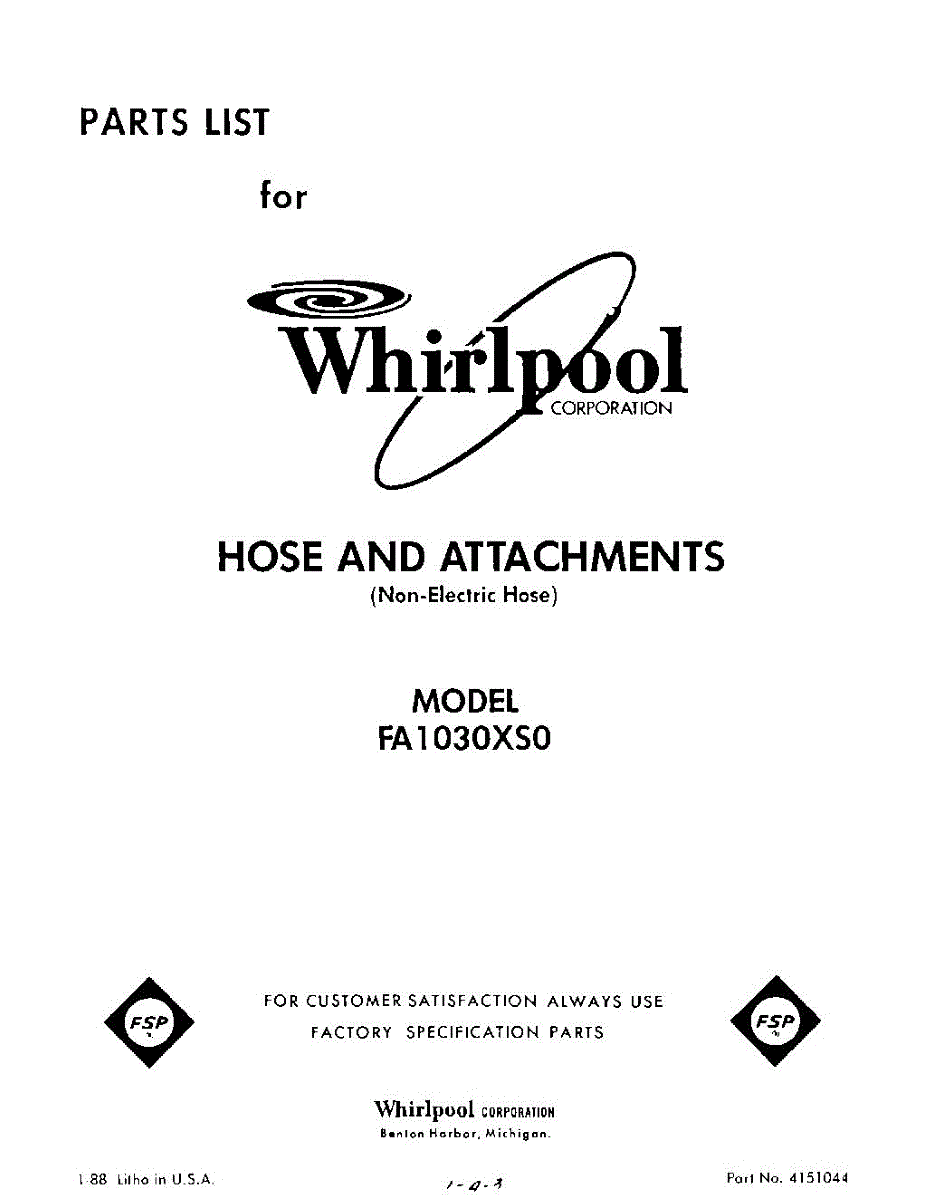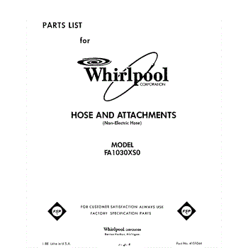 Parts for Whirlpool FA1030XS0: 01 - Section Parts