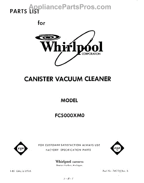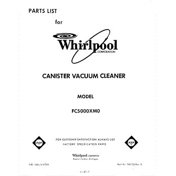 Parts for Whirlpool FC5000XM0: 01 - Section Parts