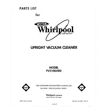 Parts for Whirlpool FV2100XR0: 01 - Section Parts