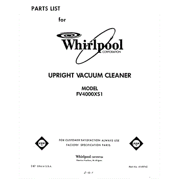 Parts for Whirlpool FV4000XS1: 01 - Section Parts