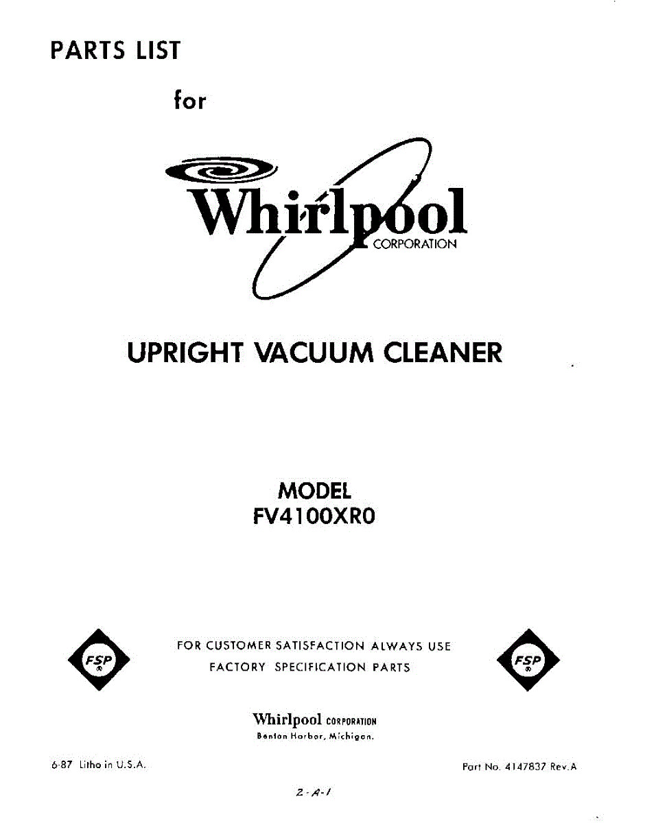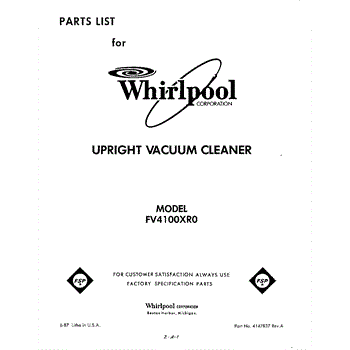 Parts for Whirlpool FV4100XR0: 01 - Section Parts