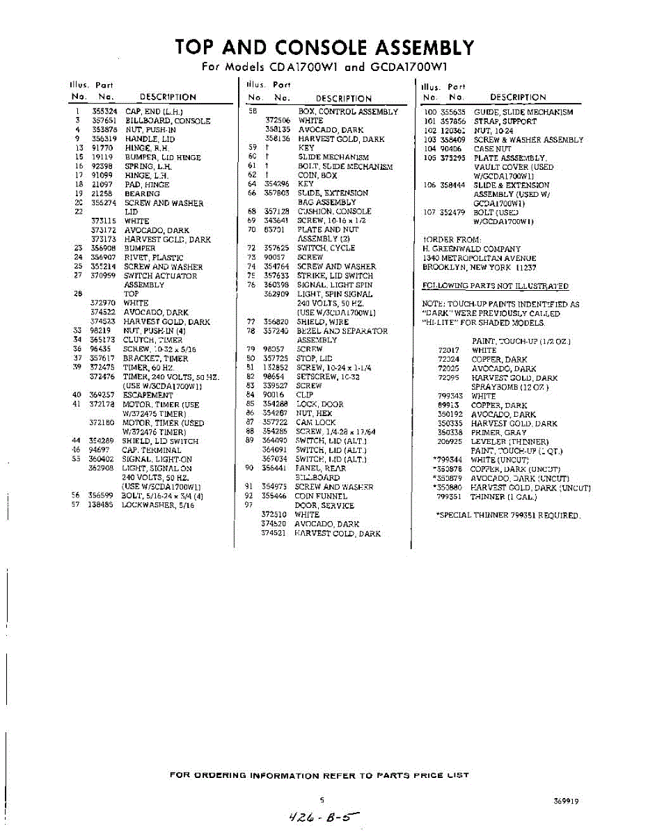 Parts for Whirlpool GCFA2000W0: 05 - Section Parts