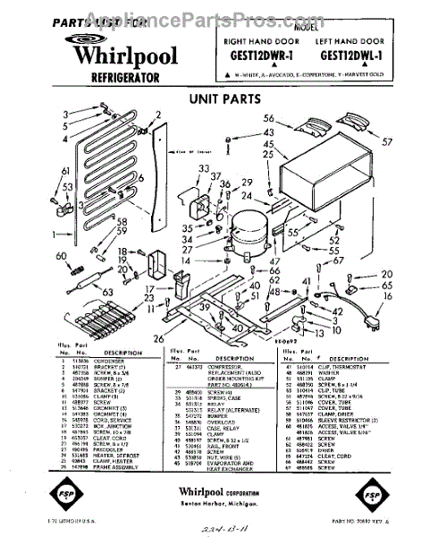 Parts for Whirlpool GEST12DWR1: 01 - Section Parts