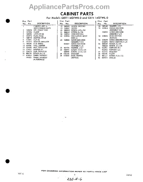 Parts for GETT14GTWR0