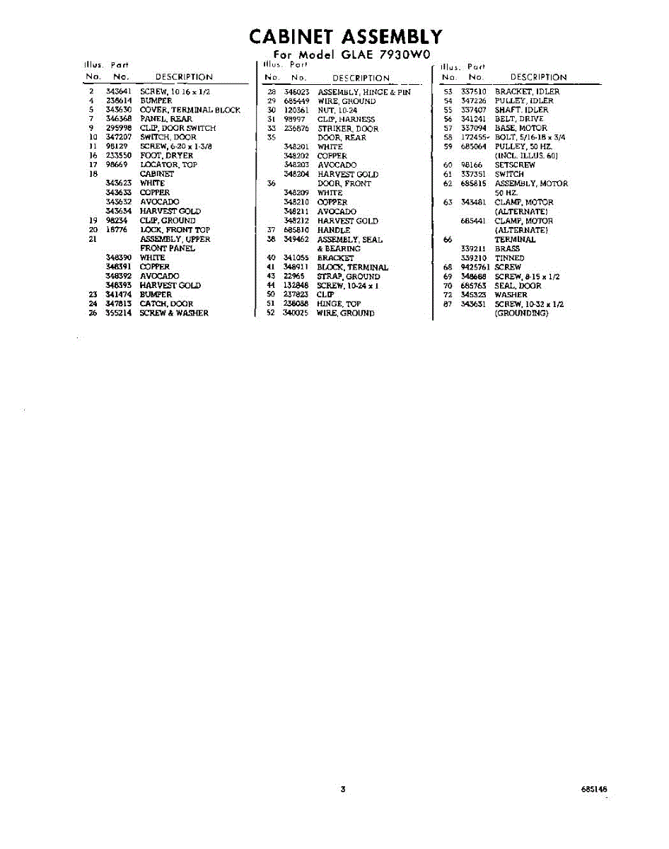 Parts for Whirlpool GLAE7930W0: 03 - Section Parts