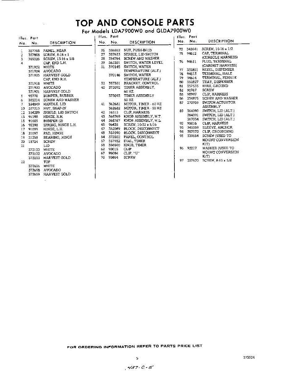 Parts for Whirlpool GLDA7900W0: 05 - Section Parts