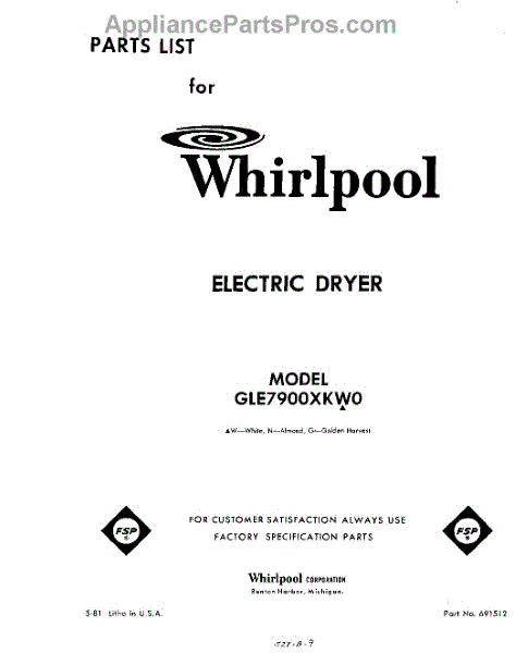 Parts for Whirlpool GLE7900XKW0: 01 - Section Parts