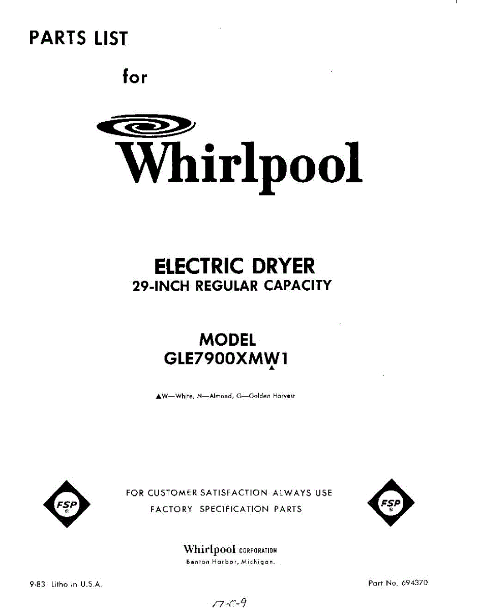 Parts for Whirlpool GLE7900XMW1: 01 - Section Parts