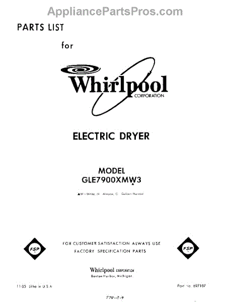 Parts for Whirlpool GLE7900XMW3: 01 - Section Parts