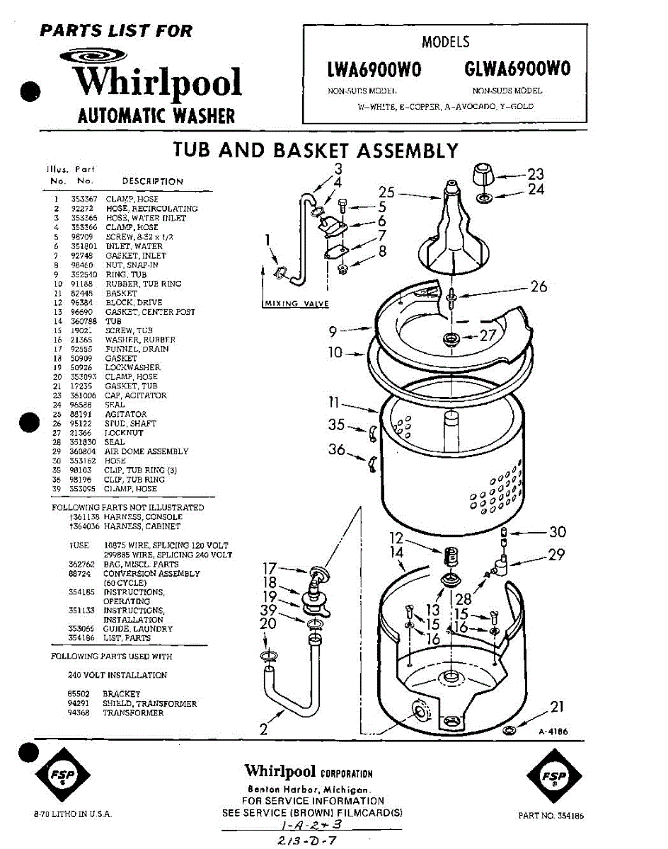 Parts for Whirlpool GLWA6900W0: 01 - Section Parts