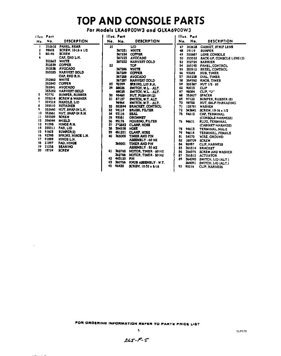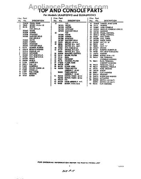 Parts for Whirlpool GLXA6900W3: 05 - Section Parts