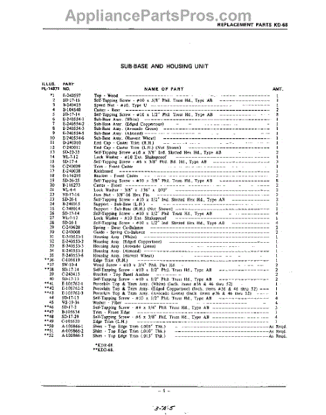 Parts for Kitchenaid KDD68: 05 - Section Parts