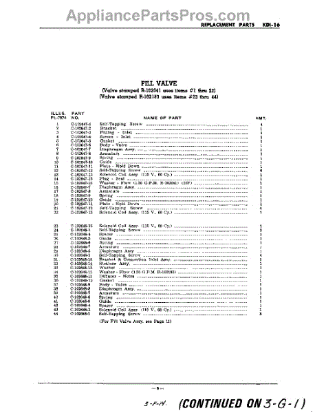 Parts for Kitchenaid KDI16: 05 - Section Parts